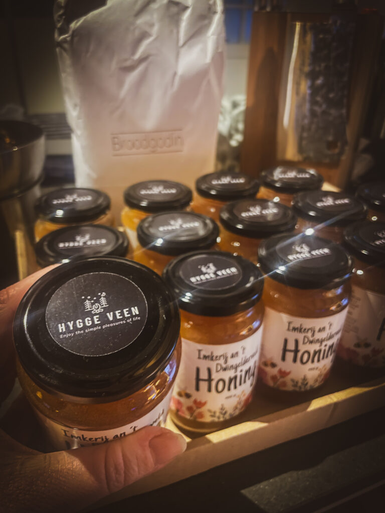 Geniet van eerlijke, lokale en zelfgemaakte producten en steun tegelijkertijd lokale initiatieven. Wij bieden bijvoorbeeld no-meuk broodjes (om in onze oven af te bakken) aan van een lokale bakker. Heerlijke croissants, desembollen-en meerzaden broodjes. Daarnaast verkopen wij producten van het Nederlandse merk Wilderland, een initatief om de agrarische monocultuur om te turnen tot een “wilder land” middels regeneratieve landbouw. Wil je echt super lokaal? Haal dan in onze Coffee Caravan onze eigen Hygge Veen honing! Daar zijn we heel blij mee en trots op. Onze harde werkers maken vloeibaar goud van al het lekkers van de heide van het Mantingerveld en onze eigen inheemse bloemenmengsels.
